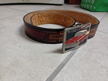 vendo cintura con fibia in metallo smaltato raffigurante un chevrolet del 1956 bel air dei primi anni 90 proveniente dall'America sempre conservata e mai usata lunghezza completa di fibia 105cm NO PERDI TEMPO.