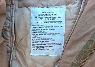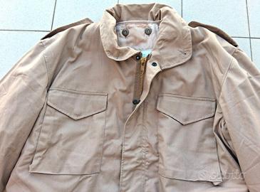N882) Field Jacket M-65 (Coat cold weather khaki jacket) U.S. Army con etichette militari originali in rara versione desert. Mai usata in ottimo stato (possibili minimi segni di immagazzinaggio). La taglia riportata è Large Regular (ma senza nessun impegno in merito a taglie, vestibilità ecc. lo cedo esclusivamente come oggetto da collezionismo militare). Tutte le zip ed i bottoni perfettamente funzionanti. Interno imbottito staccabile e cappuccio estraibile. Stupendo pezzo, introvabile nella versione desert.