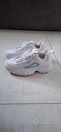 Vendo FILA Disruptor 2 Junior originali, colore bianco e blu, indossate solo una volta, quindi pari al nuovo.