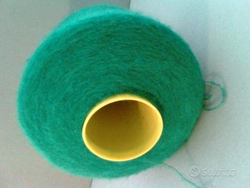 Filati in rocca 840 grame di fili misto, che contengono 50 % di mohair e 50 % elastina. Marca Fillpucci, Made in Italy.