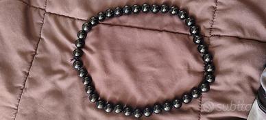 2) filo di onice nero con perle di diametro 1,3 cm, lunghezza 53 cm.