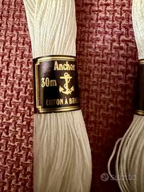 Due matassine di filo da ricamo Anchor 25. Colore bianco. 30 matri per matassina. Cotone.