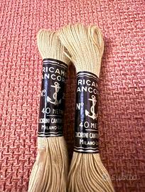 Due matassine di filo da ricamo Ancora 25. Colore beige 321. 40 metri per matassina. Cotone.