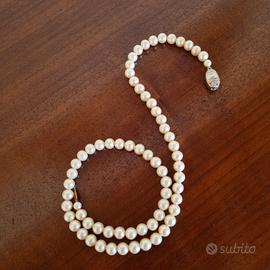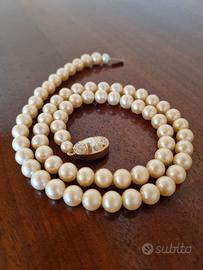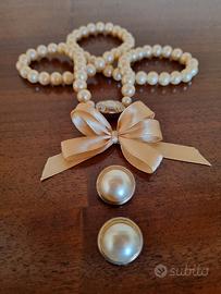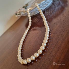 Bigiotteria vintage ma ben conservata composta da un filo di perle di diametro inferiore al centimetro in tonalità crema.