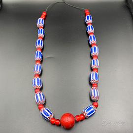 Grandi perle di vetro con un filo di perle di corallo vintage.