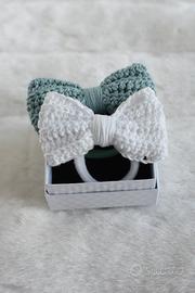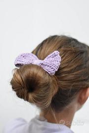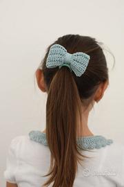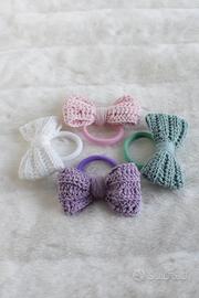 Delizioso elastico con fiocco realizzato interamente a mano all’uncinetto, perfetto per aggiungere un tocco elegante e artigianale a ogni acconciatura.
