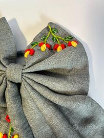 Stupendo fiocco per capelli, interamente realizzato e ricamato a mano. Decorazione floreale con margherite rosse.