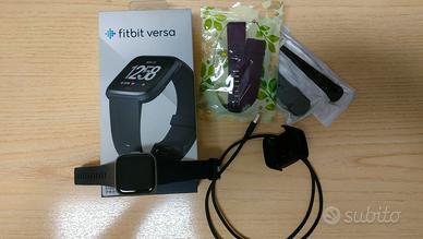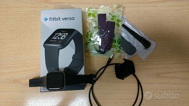 Fitbit Versa, con scatola originale, caricabatterie, 2 cinturini originali neri e 3 colorati. Specifiche: