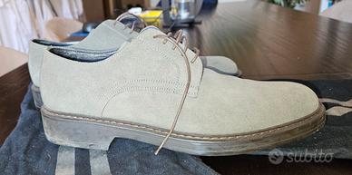 FLORSHEIM scarpe uomo Derby, pelle scamosciata , colore tortora, taglia 42,veste molto ampio (come una 43). Indossate solo due volte per provarle, ma, appunto, troppo grandi. Sono praticamente nuove.