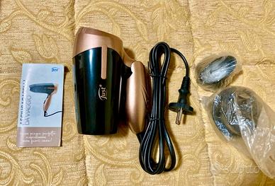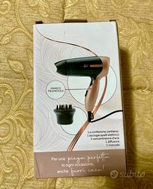 Nuovissimo molto comodo, pratico si raccoglie e prende poco spazio ma funziona benissimo asciuga rapidamente i capelli