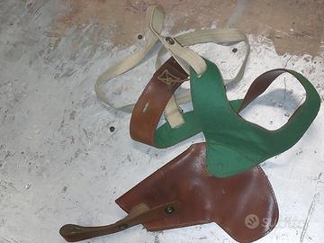 Vendo fondina da spalla/ascellare in vero cuoio rivestita internamente in tessuto spesso colore verde per pistola. Oggetto usato ma in ottime condizioni. Non spedisco.