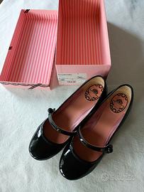 Scarpe Fornarina modello Mary Jane in vernice nera. Numero 38. Suola in cuoio. Cinturino con elastico sotto il bottone. Con scatola.