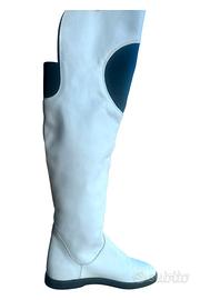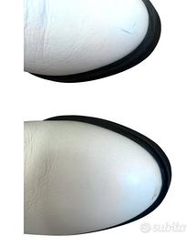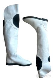 Particolari stivali 100% in pelle bianca con dettagli neri elastici, taglia 38, Fornarina anni 2000, vintage. Mai portati, piccoli segni facilmente rimovibili dovuti solo allo stockaggio. #fornarina #fornarinafemme #fornarinadonna #scarpefornarina #stivalifornarina #fornarinavintage #fornarinavintage2000 #stivalianni2000 #stivalivintage #stivaliy2k
