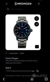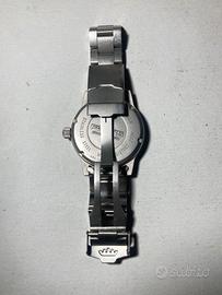 Vendo splendido Fortis Flieger Automatic, referenza 595.10.46, un pezzo iconico dell'orologeria militare svizzera. L'orologio è un autentico fondo di magazzino (NOS): non è mai stato indossato e conserva ancora la pellicola protettiva originale (visibili in foto sul vetro ). Nuovo, mai usato. Segnalo solo un micro-segno superficiale sul bracciale . e minuscoli graffi dovuto allo stoccaggio pluridecennale, quasi invisibile. Movimento: Meccanico a carica automatica (ETA 2824), testato e perfettamente preciso(confrontato con iPhone, tiene il tempo al secondo). Cassa: Acciaio satinato da 40 mm (esclusa corona). Quadrante: Nero stile "B-Uhr" con indici al trizio che hanno preso una bellissima patina vintage naturale. Bracciale: Originale in acciaio con doppio logo Fortis . Corredo: Solo orologio (senza scatola e documenti), come da ritrovamento in stock. Un'occasione rara per acquistare un classico dell'aviazione in condizioni di fabbrica, introvabile con le plastiche ancora applicate. Prezzo: € 690,00 Valuto offerte sensate, ma non svendo data la rarità delle condizioni. Consegna: Disponibile per scambio a mano o spedizione tracciata tramite TuttoSubito.