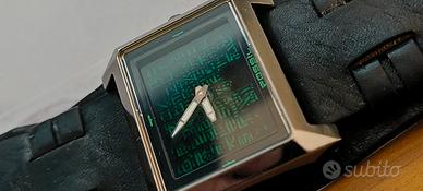 Fossil Big Tic JR-8340 è un orologio analogico-digitale vintage, diventato un pezzo da collezione per gli appassionati di cinema e tecnologia dei primi anni 2000. È celebre per la sua associazione con il film The Matrix, caratterizzato da un display animato che richiama il celebre "codice a cascata" verde della saga. Caratteristiche Principali: Design "Ana-Digi": Combina lancette analogiche per l'ora e uno sfondo digitale LCD animato per i secondi. Costruzione Robusta: Cassa in acciaio inossidabile da 38 mm con finitura spazzolata e fondo a vite. Sistema a Tripla Batteria: Utilizza 3 batterie separate: una alimenta il movimento analogico e l'altra il display digitale "Big Tic". Se una batteria si esaurisce, l'altra funzione continua a operare indipendentemente. Impermeabilità: Solitamente classificato per una resistenza fino a 50 metri. In Arrivo e compreso Cinturino in acciaio 316 Nero.