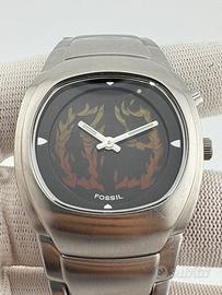 Cassa e bracciale sono satinati mentre il quadrante presenta le fiamme colorate che ci danno una visualizzazione digitale al numero. Il tipo di visualizzazione di controlla tramite il pulsante a ore 2. Il fondello è a vite e garantisce impermeabilità statica a 50m.