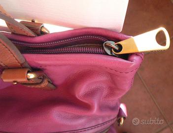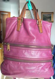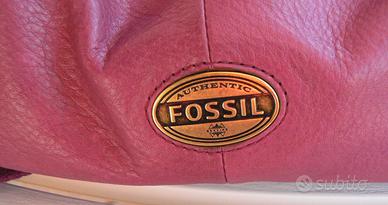 Borsa in morbidissima pelle Fossil modello Explorer Fold Over, mai usata, priva di difetti. Tracolla in cotone e manici in pelle. Dimensioni in cm: Altezza 39 - Larghezza 35 - Profondità 10