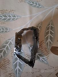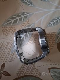Bellissimo cronografo Fossil dal design originale, perfetto per chi vuole distinguersi. 🟤 Caratteristiche principali: Cassa in acciaio con finitura brunita Quadrante effetto legno scuro (molto particolare e raffinato) Numeri grandi (12, 3, 6, 9) per massima leggibilità Funzione cronografo con 3 contatori Lancetta dei secondi arancione a contrasto Bracciale in acciaio coordinato Pulsanti laterali per cronografo 💡 Stile: casual/elegante con un tocco vintage moderno 📏 Orologio di dimensioni generose, molto scenografico al polso ⚙️ Movimento al quarzo preciso 📌 Condizioni: buone, con segni d’uso leggeri coerenti con l’utilizzo 🔥 Design unico, difficile da trovare uguale