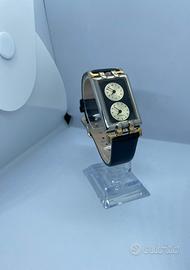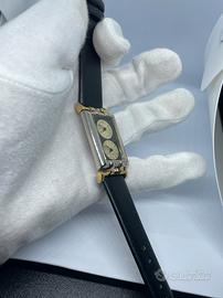 Orologio funzionante. Cassa tank. Doppia corona. Cinturino appena montato. Due fusi orari. Orologio funzionante. Molto elegante. Anse a maniglia ( in questo caso maniglia fissa ). Dimensioni 24x34mm corone e anse escluse. Orologio davvero elegante. Dress watch. Valuto scambi con seiko, orient, perseo.