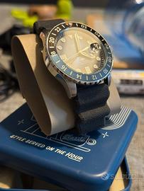 Movimento: Al quarzo con funzione GMT, che permette di tracciare più fusi orari contemporaneamente.
