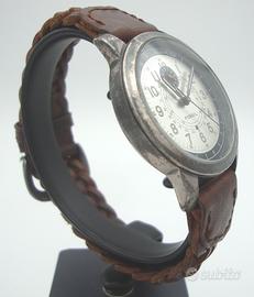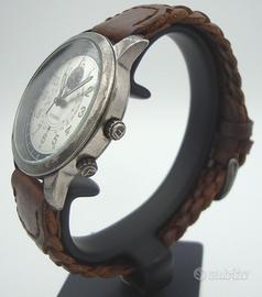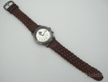 Il cinturino a treccia è ancora in ottimo stato, si adatta molto bene al polso, piacevole da indossare, le imperfezioni della cassa sono volute dal costruttore per dare uno stile retrò. Lo scatto dei secondi è abbastanza silenzioso da non essere notato.