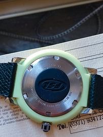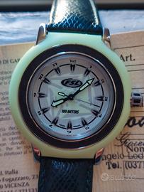 Orologio Fossil Scuba 10 ATM del 1996 in ottime condizioni estetiche e funzionali completo di corredo e garanzia dell' epoca. Cassa in acciaio inox 42 mm .con rivestimento in plastica luminescente, cinturino in pelle originale, movimento al quarzo, water resistent 10 ATM, orologio di difficile reperibilità. Vendo con formula visto e piaciuto e conseguente esclusione di garanzia ad euro 60,00 non uso tuttosubito solo consegna a mano ✋ zona Pavia e dintorni no altre modalità di transazione grazie. Acquisto orologi Seiko subacquei automatici usati ottima valutazione pagamento immediato. MARTICANA Watch contatti al n. 329.8162357 solo chiamate no whatsapp.