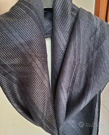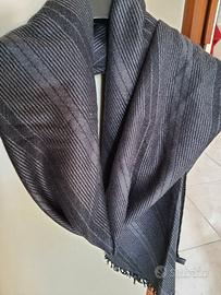 Foulard a scialla color grigio con strisce nero, materiale lana pettinata Misure; Lungo 1.20 largo 0,80 cm.