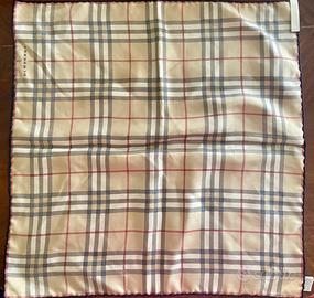 Vendo foulard Burberry dalle dimensioni 46x46; è in condizioni pari al nuovo, indossato pochissime volte, come si può evincere dalle foto (l'ultima foto rappresenta il lato interno del foulard).