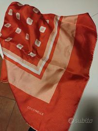 Foulard da donna marca Coccinelle, multicolor con bordo a tinta unita, in morbida seta (cento x cento), misura 87x87. Con confezione originale