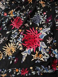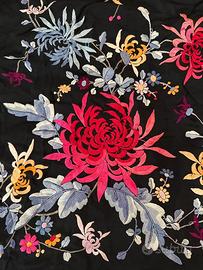 Foulard con ricamo a mano in seta di fiori rossi