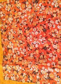Foulard color corallo con fiori gialli in pura seta. Misure 80x80cm, mai indossato e in perfette condizioni