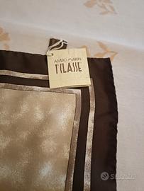 In pura seta con stampa cartina geo. Il foulard è arricchito dalla riquadratura della stampa nei colori a tono del marrone.