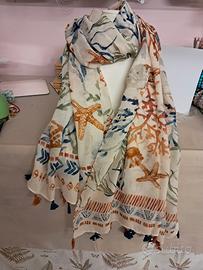 Bellissimo foulard Bello come scaldacollo oppure come pareo per il mare . In viscosa 100% Misure 180 x 80 cm. Con disegni a coralli e frangette finali. Di Marta Marzotto Nuovo con cartellino.