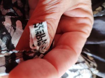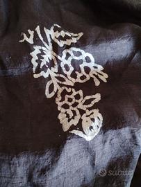 foulard in pura seta indiana 100%, fantasia bianca su fondo nero, orlo a mano, Made in India. Misure : 100 x 110 cm.