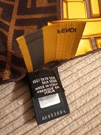 Foulard di marchio Fendi in 100% seta. Nei toni marron - beige, misura cm 56 x 56 circa. Usato pochissimo, è in ottime condizioni, come nuovo.