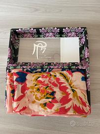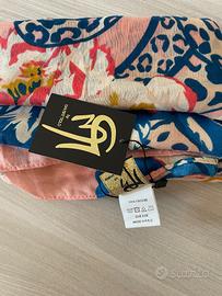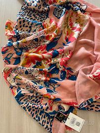 Foulard donna Gai Mattiolo, nuovo con cartellino. Fantasia originale e raffinata con stampa leopardata e motivi floreali su base rosa. Tessuto leggero 100% viscosa.
