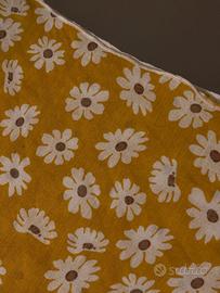 Foulard giallo con fantasia a margherite bianche. Dimensioni: circa 53 × 53 cm Tessuto leggero, ideale per primavera/estate. Utilizzabile come foulard, accessorio per capelli o per borse. Condizioni: buone, nessun difetto. Ritiro zona Metro Spezia, possibile spedizione.