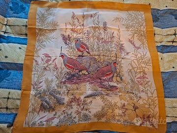 Il foulard presenta la dicitura “Hand Made in Italy”, dettaglio che ne conferma l’alta qualità artigianale e la produzione italiana, particolarmente apprezzata nel collezionismo e nella moda vintage di lusso.