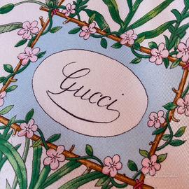 Foulard vintage Gucci Accornero in seta con stampa floreale, anni '70, buonissime condizioni.