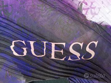 Vendesi bellissimo foulard di marca Guess originale, nei colori dal rosa tenue sfumate fino al viola, con leggerissimi elegantissime plissettature e tenui disegni di fiori come sfondo.
