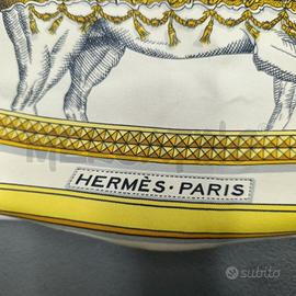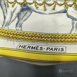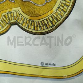 FOULARD HERMES BEIGE E GIALLO CONDIZIONI MOLTO VISSUTE DEGLI DI USURA PICCOLO FORELLINO POCO VISIBILE MACCHIE DA LAVARE