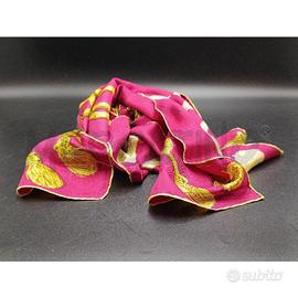 FOULARD HERMES BORDAUX ELEGANTE FOULARD HERM S PALEFROI (1965) IN PURA SETA MAGENTA. IL DESIGN DI FRAN OISE DE LA PERRI RE RAFFIGURA UN MAESTOSO CAVALLO MEDIEVALE TRA RICCHI INTRECCI DORATI. DIMENSIONI 90X90CM