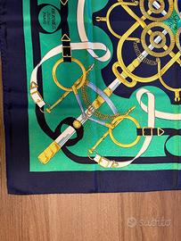 Il foulard ha qualche macchia e un piccolo buco causato da una spilla.