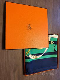 Foulard Hermès Carre 90 Eperon d'Or Golden in pura seta, nella sua confezione originale. Disegnato dallo stilista iconico Henri d'Origny, che collabora con Hermès da oltre cinquant'anni.