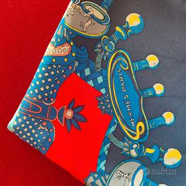 Foulard anni 80 creato dall'artista Annie Faivre che ritrae caroselli in pura seta quadrato 90 x90