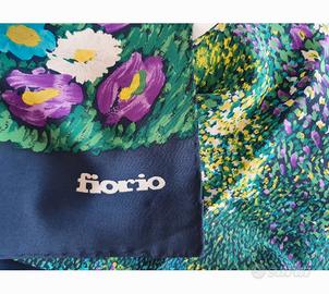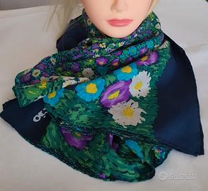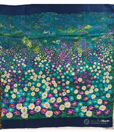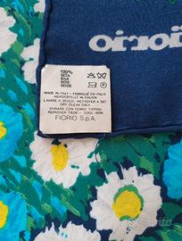 Superlativo foulard in pura seta FIORIO, degli anni '70, in eccellenti condizioni, in fantasia fiorita multicolore su sfondo blu. Splendido tessuto. Misure: cm 85 x 87.