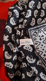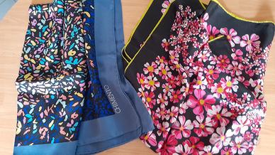 Foulard base nera con fantasia geometrica 73x73 e quello con motivo floreale 86x86 sono in pura lana.