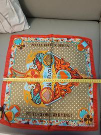vendo, come da foto, foulard multicolore in seta Moschino Vintage ^No to Global Warming!^ nuovo in confezione originale.