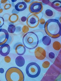 Vendo foulard motivo geometrico, colori viola/fucsia/arancione, 100% poliestere, made in Italy, come nuovo