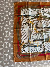 🧣 Foulard elegante con motivo in stile equestre – come nuovo Bellissimo foulard quadrato in raso/satin, con raffinato motivo a briglie e redini in stile equestre. 🎨 Colori caldi ed eleganti: marrone, crema, verde, rosso e dettagli dorati. Perfetto per dare un tocco chic a qualsiasi outfit. 📏 Formato: quadrato (ideale da indossare al collo, tra i capelli o sulla borsa) 📐 Dimensioni: 88 cm x 84 cm 🎨 Stile: classico, elegante, senza tempo 👗 Occasioni: lavoro, tempo libero, eventi ❎ Nessun difetto. 🛍️ Vendo per inutilizzo. 📦 Spedizione veloce 💬 Scrivimi per qualsiasi domanda!